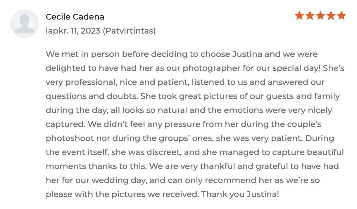 „Justina sukūrė nuostabią atmosferą fotografuojantis, todėl fotosesija visiškai nevargino, o kaip tik - žiauriai linksmai praėjo!”